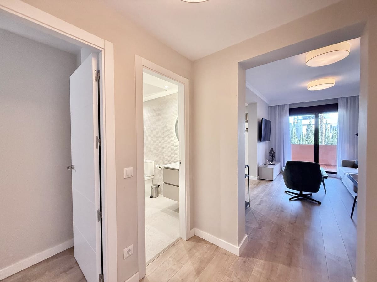 This property is on a Frontline Golf resort situated at the intersection of Marbella, Estepona, and Benahavís, just a convenient 10 minute drive to the beach. Located on the edge of El Paraiso Golf, a stones throw away from Villa Padierna Golf, Tramores Golf, Atalaya Golf, and Guadalmina Golf. Guests can enjoy access to two swimming pools (open year-round), a lovely co-working space, and a professionally equipped gym.