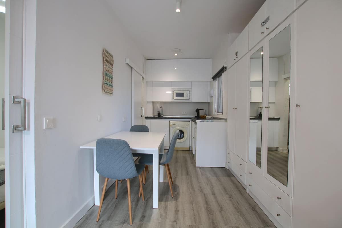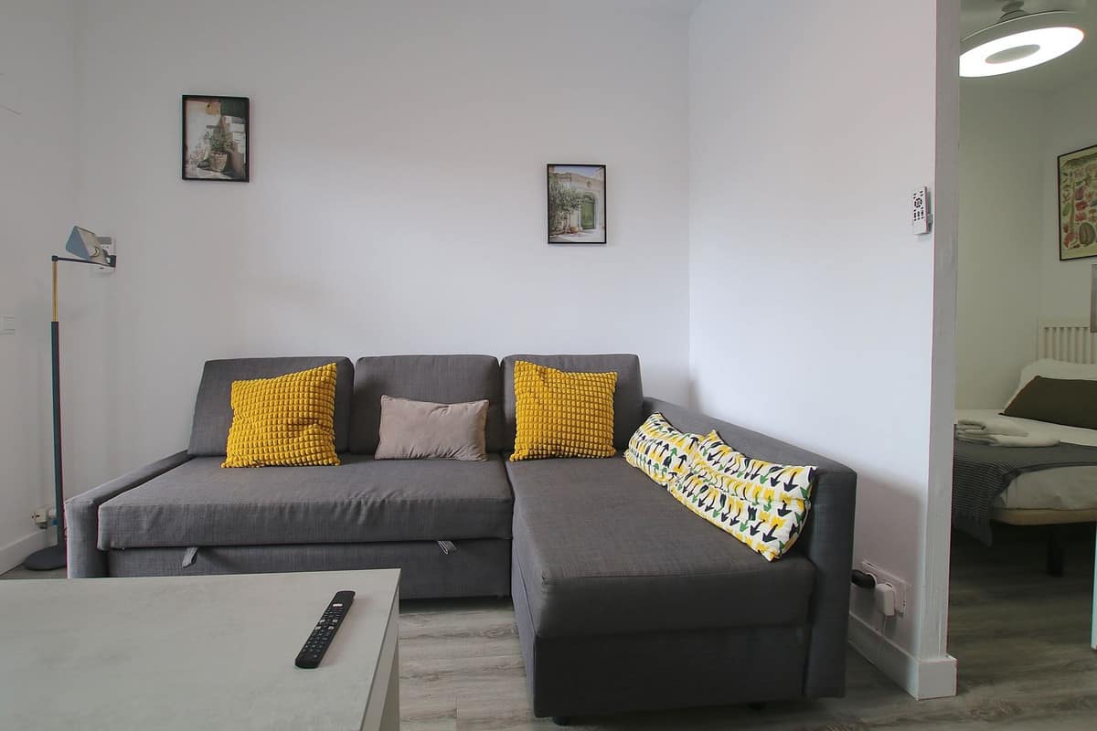 The apartment offers a spacious and bright bedroom and a full bathroom with a shower. Its layout is comfortable and functional, making the most of every square meter.