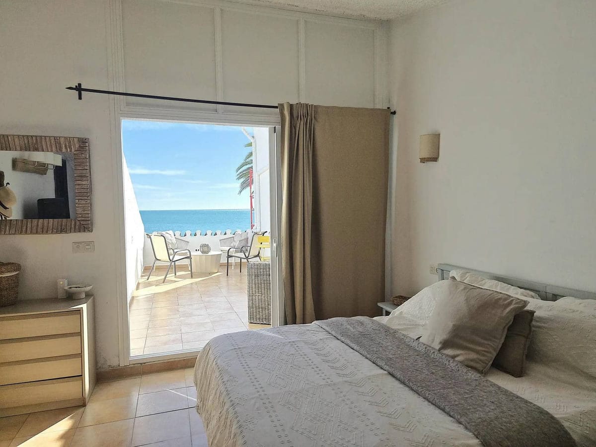Upstairs, the generous bedroom offers built-in wardrobes and an adjoining bathroom. Elegant glass French doors open to stunning sea views, allowing you to wake up and enjoy the Mediterranean from the comfort of your bed.