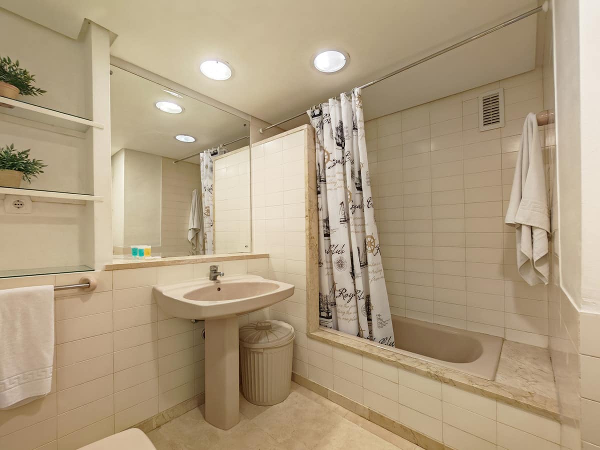 Apartment for sale in Jardines de las Golondrinas, Marbella with 1 bedroom, 2 bathrooms, 1 on suite bathroom and with orientation north/west, with communal swimming pool, private garage (1 parking spaces) and communal garden. Regarding property dimensions, it has 73 m² built, 67 m² interior and 13 m² terrace. Has the following facilities air conditioning, fully fitted kitchen, storage room, fitted wardrobes, gated community, lift, pool view, beach side, close to sea / beach, open plan kitchen, balcony, good condition, close to shops, close to town, close to port and close to schools.