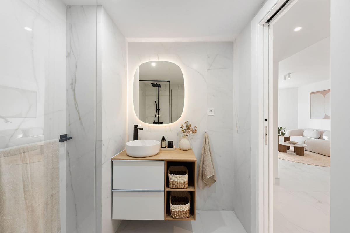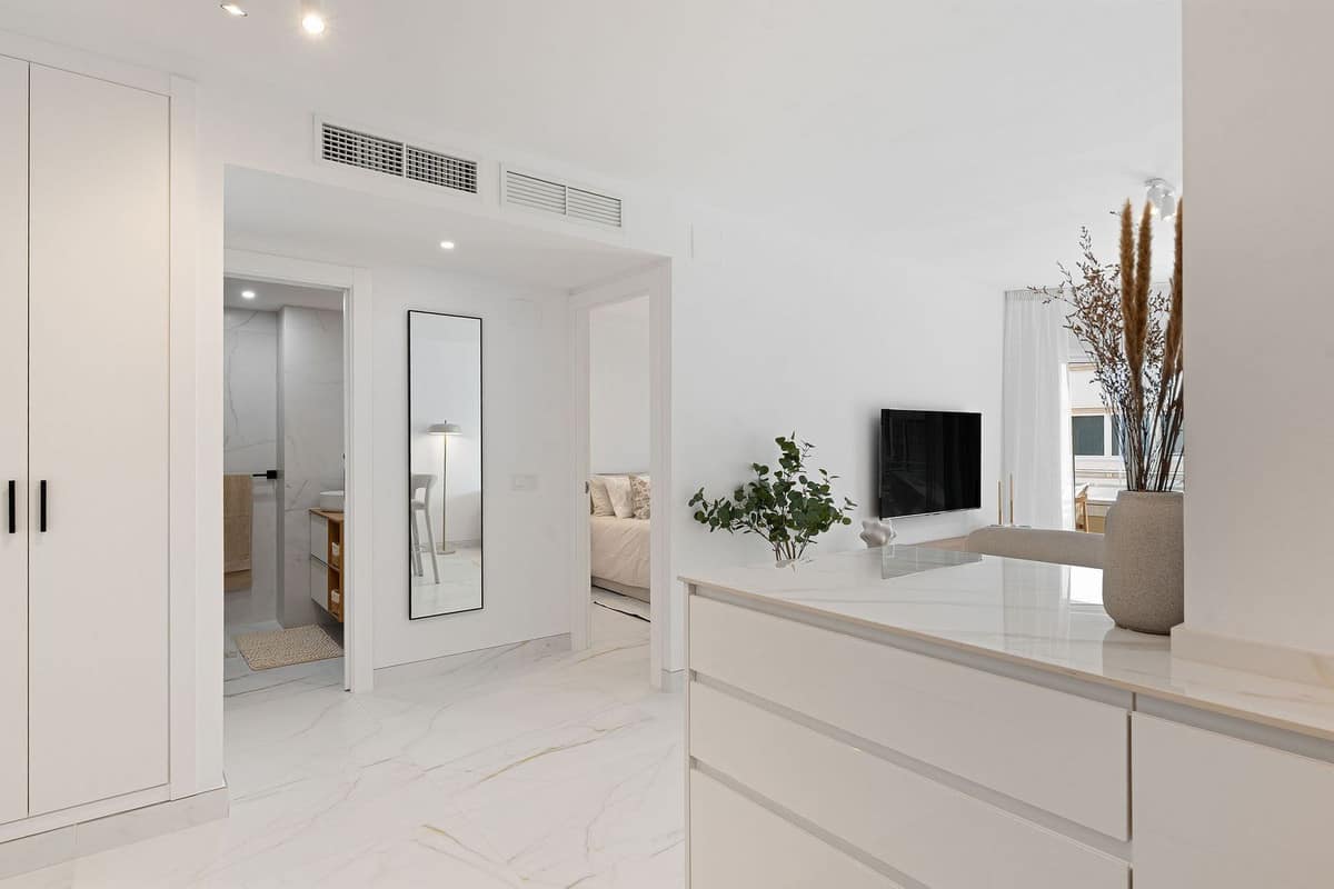 The apartment has been fully refurbished with a contemporary design, the interior features an open-plan layout that maximizes natural light and harmony. The bright living room flows into a sleek, fully equipped kitchen with integrated appliances and modern finishes. The spacious bedroom offers built-in wardrobes and a serene ambiance, while the elegant bathroom showcases high-quality fittings and a clean, modern style.