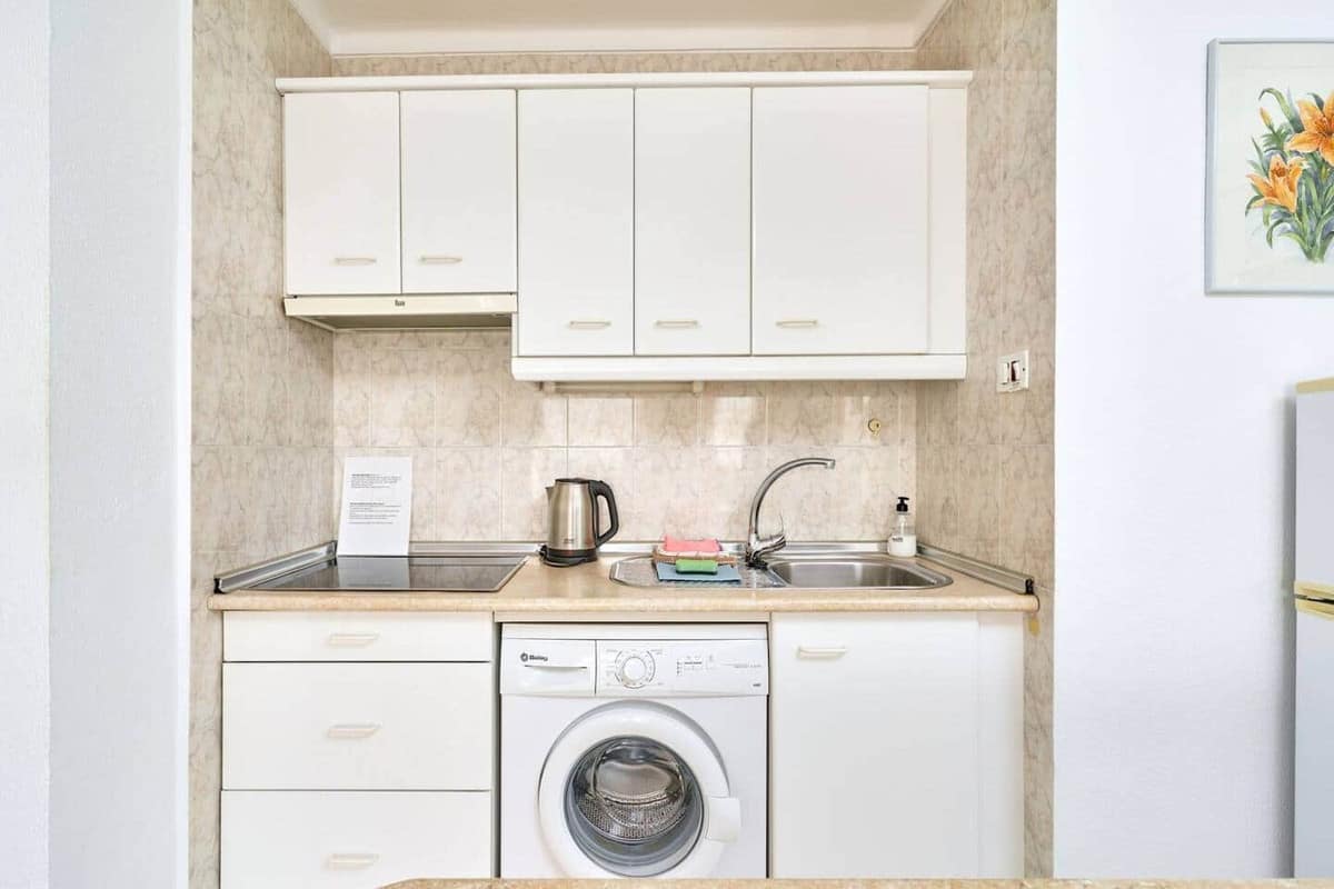 Residents have access to a well-maintained communal swimming pool, conveniently located just opposite the apartment, perfect for cooling off during the warmer months.