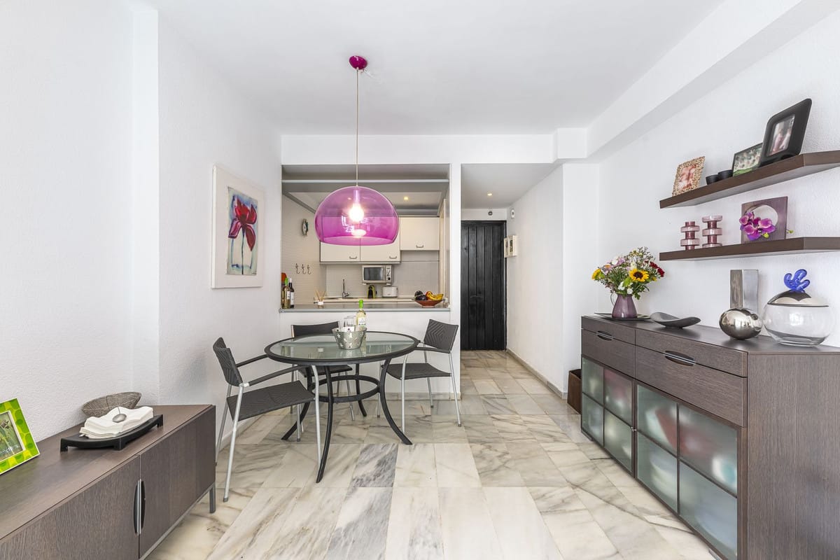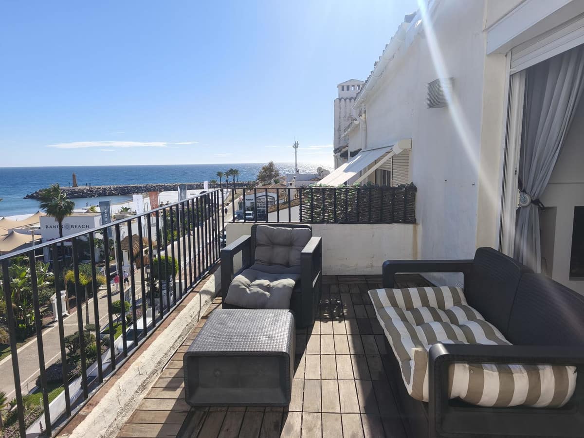 Beautiful penthouse with sea and La Concha mountain views, located in a gated community in the heart of Puerto Banús. Just a few steps from the beach, restaurants, shops, and all amenities. This bright and welcoming property offers an unbeatable location and the perfect combination of comfort and lifestyle. The penthouse features one bedroom and one fully equipped bathroom, as well as a modern kitchen and a spacious living-dining area with a fireplace, filled with natural light. The interior has been designed for both functionality and comfort, and includes centralized air conditioning, shutters, and a pleasant, airy atmosphere. The gated community provides a secure and peaceful environment, ideal for both permanent residence and holiday stays. Additionally, the property offers the possibility of short-term rentals, making it an attractive investment opportunity. An exceptional opportunity to acquire a penthouse in one of Marbella’s most exclusive areas, combining stunning sea and mountain views with a truly privileged location.