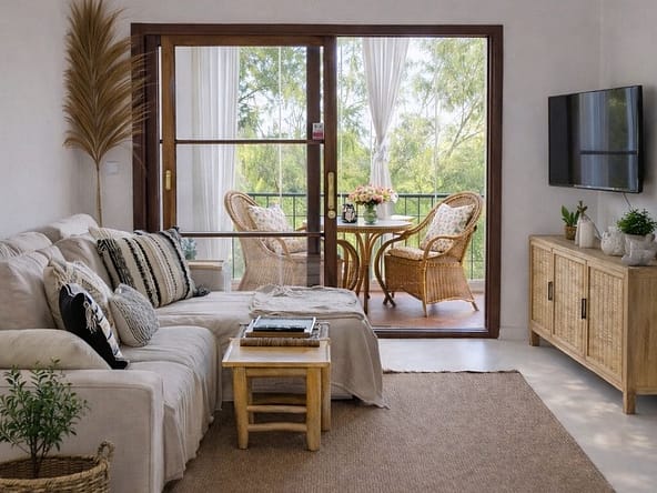 The living-dining room is designed for comfort and merges harmoniously with an open kitchen that creates a modern and functional environment.