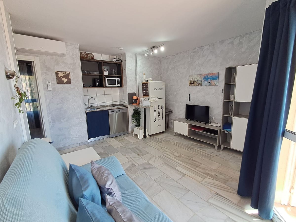 Enjoy breathtaking sea views from your private terrace—ideal for al fresco dining or simply unwinding. The apartment is bright and airy, featuring an open-plan living area, a fully equipped kitchen, and a comfortable bedroom with built-in storage.