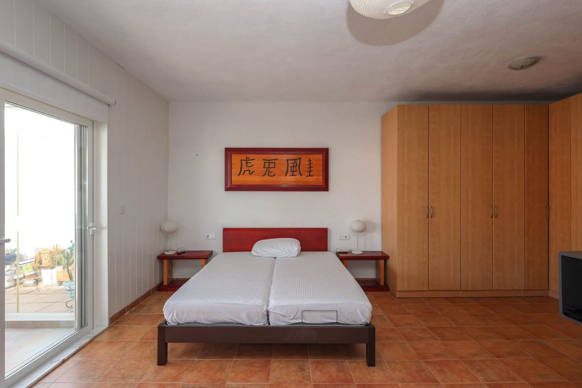 On the second floor, you’ll find an additional kitchen and a second lounge that opens onto a bright, covered terrace. This inviting space includes a wood-burning stove and a small kitchenette, making it perfect for entertaining or relaxing. The main bedroom, complete with an en-suite bathroom, is also located on this floor.