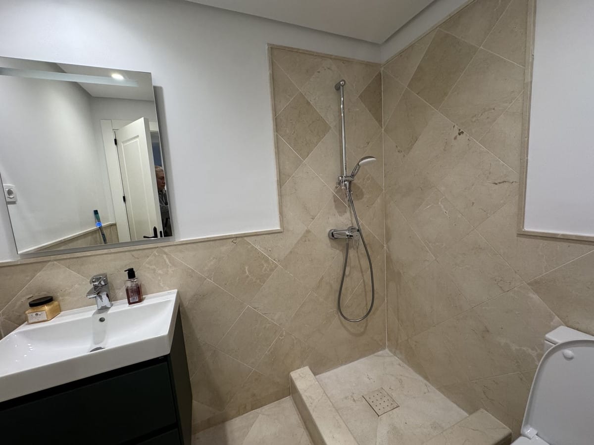 Beautiful, new, modern, fully furnished apartment with sea and mountain views for sale. Two spacious bedrooms, 2 bathrooms, sunny living room. All rooms have access to a spacious terrace (37m) facing south-east. A good parking space and storage room are included in the price. The complex has a modern gym, swimming pool, beautiful garden and security.