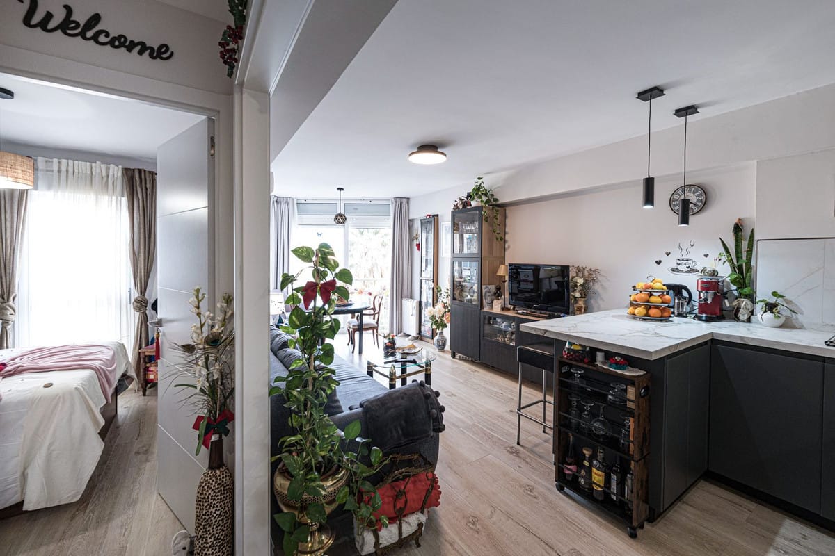 The property features a Scandinavian-style design, with clean lines, soft tones and a warm, welcoming atmosphere. It is a bright apartment, small yet extremely comfortable, with every square metre thoughtfully designed and perfectly utilised.