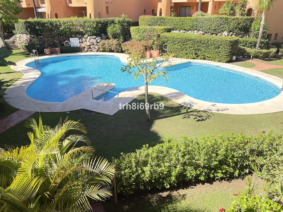 This lovely complex situated next to the wonderful Los Flamingos golf course is a perfect location for a holiday home or rental investment. With shops and restaurants just a 2 minute drive away, Albaicin complex boasts tropical gardens and a unique pool area. The apartment situated on the 1st floor is bright and airy with great views to the pool and gardens. Large living area with a terrace from the living room and mater bedroom. Fully equipped kitchen, hallway with storage area. 2 large bedrooms with master offering a walk in closet and en suite bathroom. Bedroom 2 also has a small terrace and plenty of cupboard space. with bathroom next door. The elevator takes you directly to the garage where you also have a storeroom. This is a great opportunity to live in a luxury development in between Marbella and Estepona.