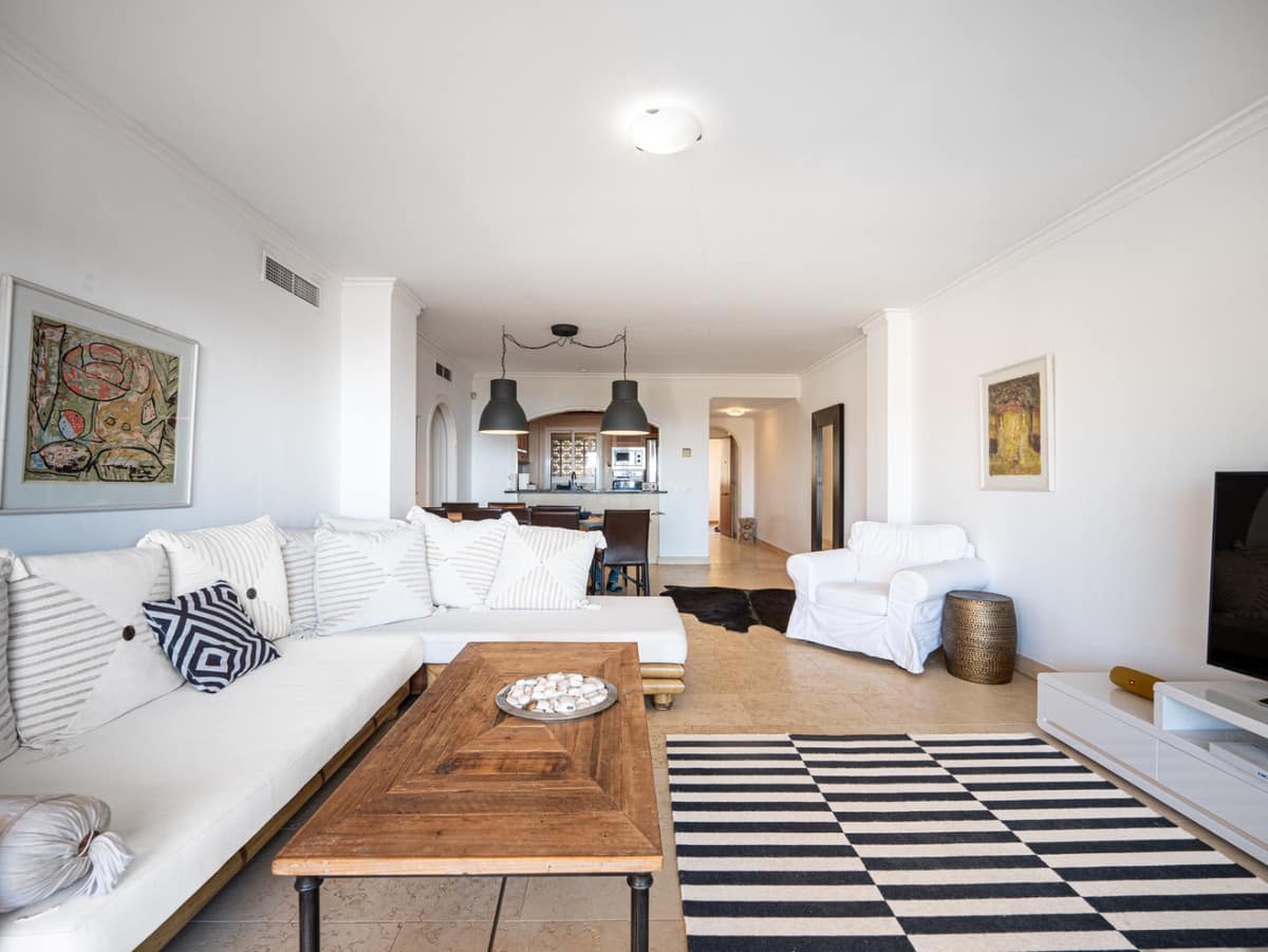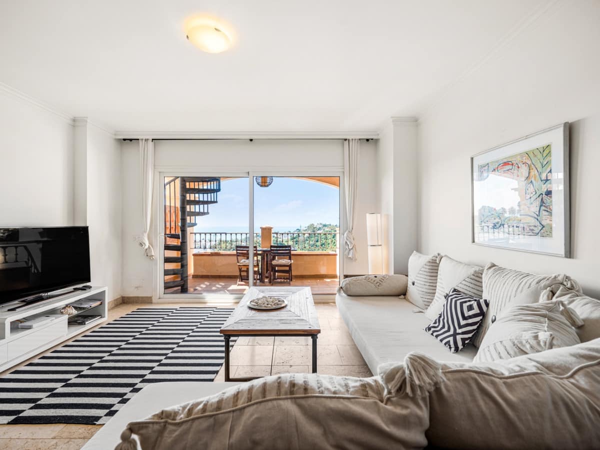 This penthouse is a 2 bedroom 2 bathroom duplex penthouse just 1 km from the beach. The home features open plan living spaces with bright interiors and large terrace windows. The kitchen overlooks the lounge and dining area through an elegant archway. The first terrace offers beautiful sea views. The property includes 2 private parking spaces and a dedicated storage room.