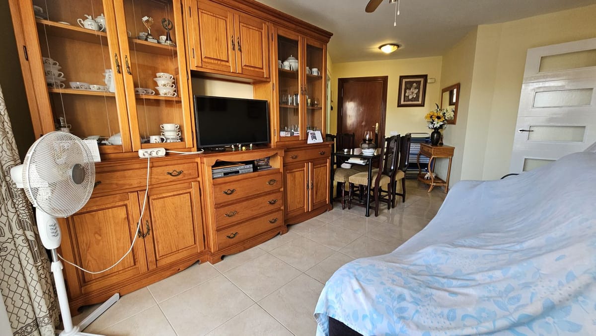 Two bedrooms with wardrobes and one bathroom – ideal for families or hosting guests. The private terrace can be closed off with glass curtains installed by the owners, along with electric blinds. Garage space is included in the price and has facility for charging electric cars.