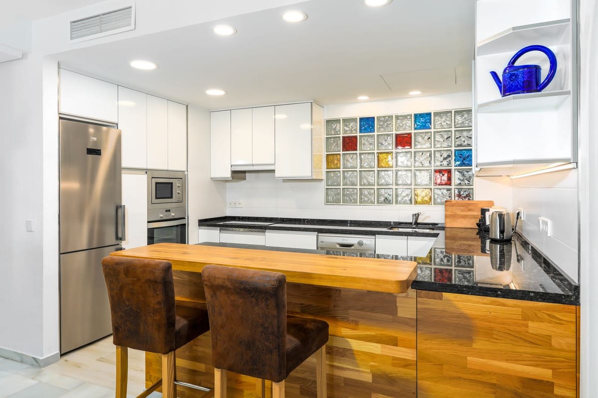 SPECTACULAR BEACHFRONT APARTMENT IN ONE OF SPAIN'S BEST MARINAS, a dream location, ready to move in and enjoy, with every luxury detail. It features a stunning living room connected to a terrace enclosed with glass curtains for year-round enjoyment, an open-plan kitchen with a large breakfast bar, two double bedrooms and two bathrooms, plus a third guest bedroom. Located on the ground floor but with ample space, it's situated in the heart of Puerto Marina, next to the Yacht Club and surrounded by all kinds of amenities. It boasts enviable transport links, just 20 minutes from the airport and Malaga, 20 minutes from Fuengirola, and 35 minutes from Marbella. Ideal for both permanent residence and holidays. Opportunities to enjoy such an exclusive location are rare, surrounded by everything yet in a quiet and peaceful area, with a communal rooftop pool and sunbathing areas offering the best views of the coast and the marina.