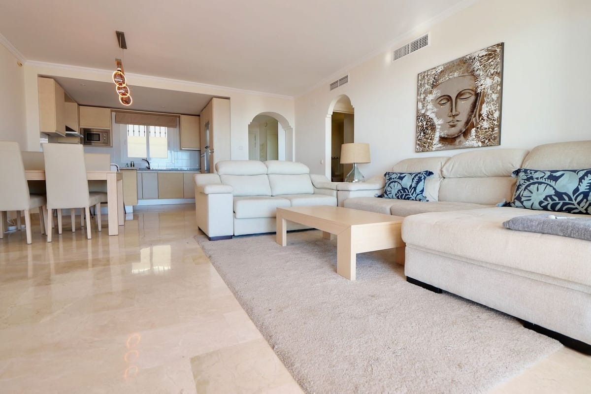 This modern open plan apartment is located in a secure gated complex in the upper part of Calahonda enjoying amazing views to the sea. What we really like about this property is the extra wide spacious living area and large terrace. The complex has five pools to choose from and this apartment comes with a private underground parking space and also a lockable storeroom. We strongly recommend a visit. This property does have the tourist rental license. A private garage parking space and storeroom included in the price.