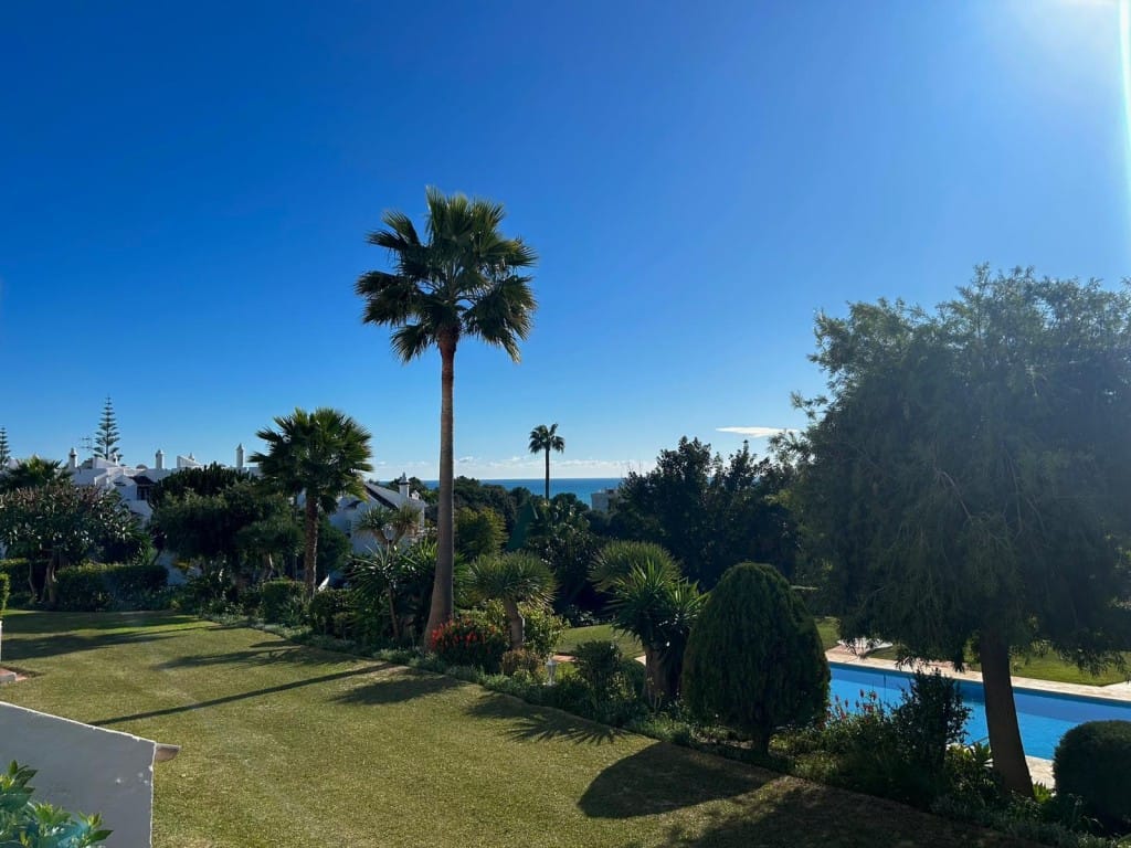 Very well positioned property, with serene views over the pristine communal gardens and pool, as well as distant sea views.