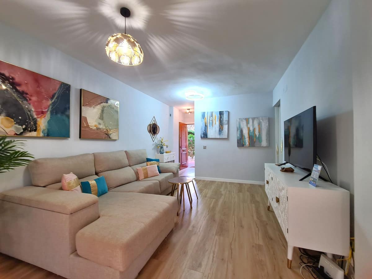 The apartment offers 2 bedrooms and 1 bathroom, distributed across 72 m² of well-utilized, bright living space. The spacious living-dining room opens directly onto a private terrace with access to a 40 m² garden, perfect for outdoor dining, relaxing, or entertaining family and friends under the Costa del Sol sunshine.