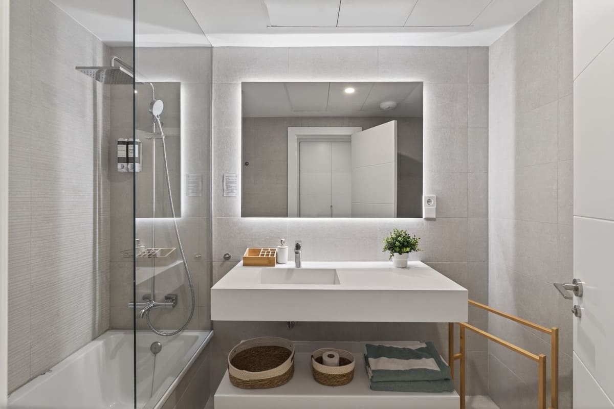 Residents benefit from excellent communal facilities, including an outdoor swimming pool, indoor pool, fully equipped gym, sauna, and a relaxing turquoise bath area.