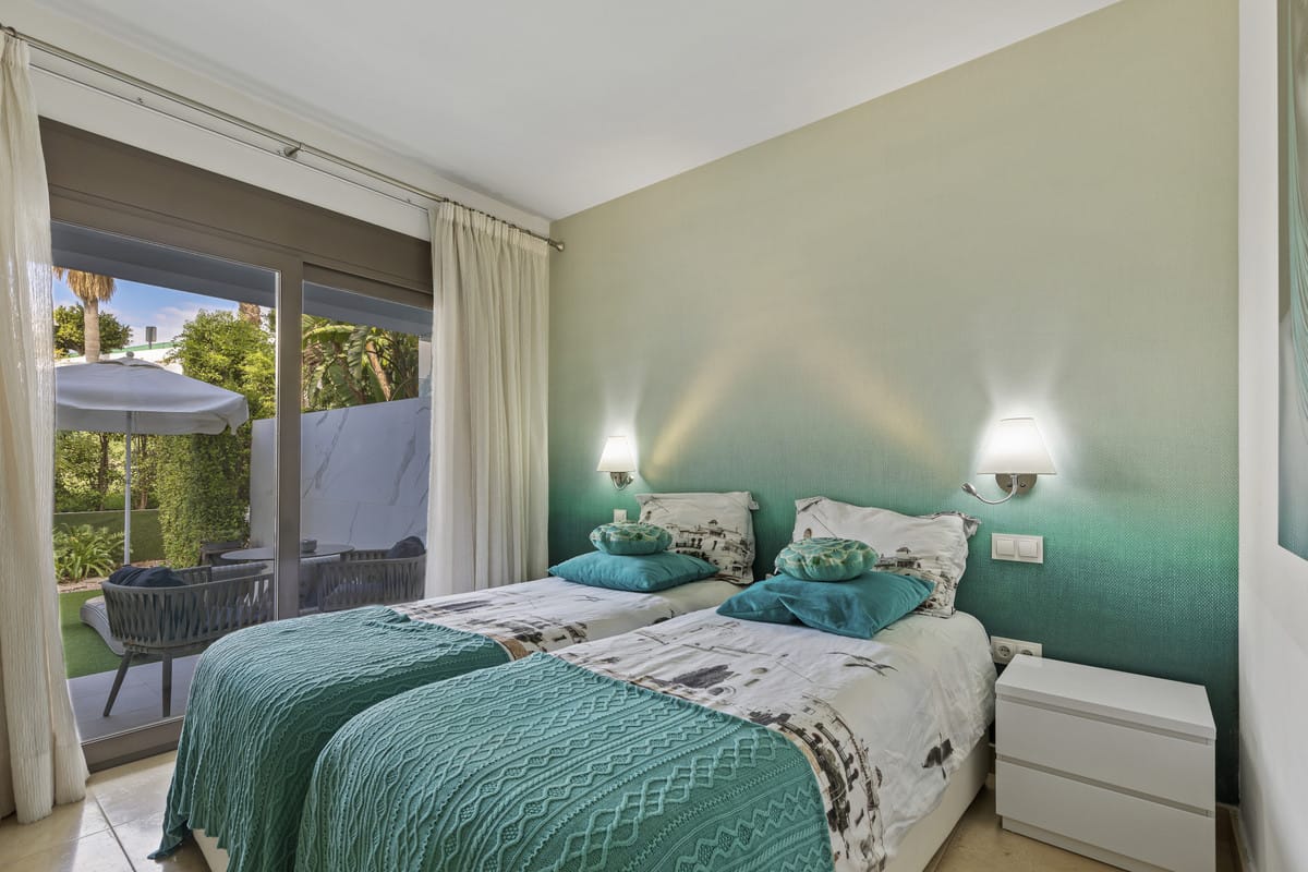 Set in an elevated position within the exclusive Finca Cortesin resort, this exceptional 2 bedroom, 2 bathroom ground-floor apartment epitomises contemporary luxury and refined Mediterranean living.