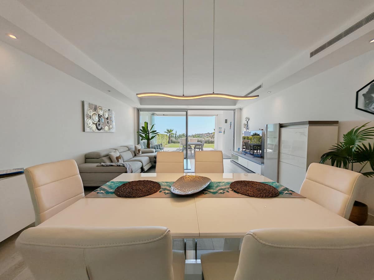 Ground Floor Apartment for sale in Alcazaba Lagoon, Casares with 2 bedrooms, 2 bathrooms, 1 on suite bathroom and with orientation south, with communal swimming pool, private garage (1 parking spaces) and private garden. Regarding property dimensions, it has 105.95 m² built, 47 m² plot and 40.62 m² terrace. Has the following facilities air conditioning, fully furnished, fully fitted kitchen, storage room, gym, alarm, double glazing, security service 24h, kitchen equipped, sea view, country view, internet – wi-fi, covered terrace, 24h service, gated community, garden view, panoramic view, close to golf and excellent condition.