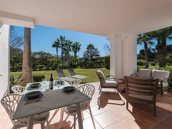 Welcome to this beautifully maintained two-bedroom, two-bathroom apartment located in the peaceful and secure community of Casares Golf & Country Club, just a few minutes from the beach and the world-famous Finca Cortesín resort. Bathed in natural light throughout the day, this home offers an inviting layout with a spacious living and dining area opening onto a private terrace enjoying serene sea views. The fully equipped separate kitchen includes a convenient laundry room. The master bedroom offers direct access to the terrace. Built in 2007 and perfectly kept, the apartment combines comfort with timeless Mediterranean charm. The gated community offers residents lush gardens, large swimming pool, and underground parking with a storage room. Ideal as a permanent home, holiday escape, or rental investment thanks to its excellent location near Estepona, Manilva, and Casares Pueblo.
