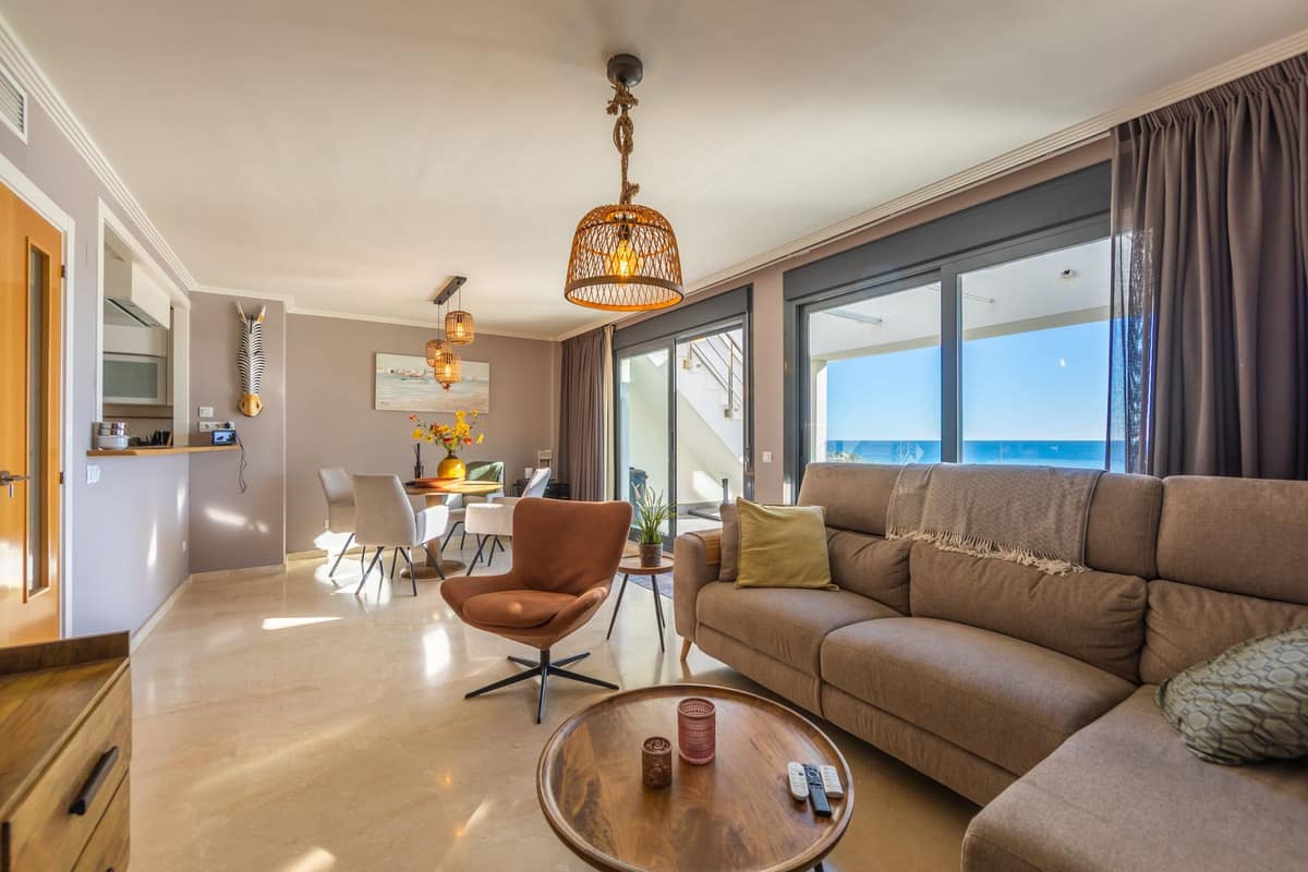Magnificent penthouse with a large terrace and southeast-facing solarium, enjoying wonderful views of the sea and the golf course. Located in a beautiful residential complex, it sits in one of the most sought-after areas, surrounded by prestigious golf courses, in a peaceful setting away from noise. Just a 5-minute drive away, you’ll find the attractive beaches of Casares Costa, the charming village of Sabinillas, and the lively Puerto de la Duquesa, where you can enjoy all kinds of shops, restaurants, and leisure options.The property features an elevator from the garage and a communal swimming pool. It also includes an underground parking space and a storage room. An excellent opportunity not to be missed.