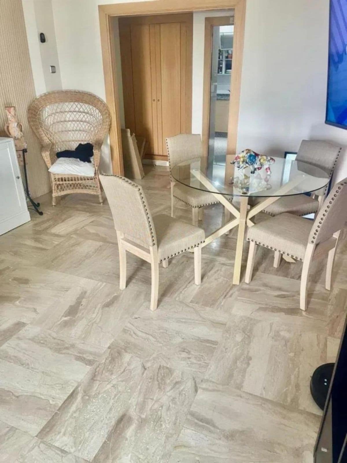 The apartment is fully furnished and equipped with all high-quality appliances, and is also air-conditioned to offer the comfort you need. This property features a spacious 27 m2 living room and an 18 m2 master bedroom en suite with a dressing room and a whirlpool bath. It has a large 35 m2 terrace, partially enclosed with glass curtains so you can enjoy the views all year round. The urbanization offers 24/7 private security, a gated community equipped with surveillance cameras and video intercom. The residence has communal gardens and three swimming pools, including children's pools.