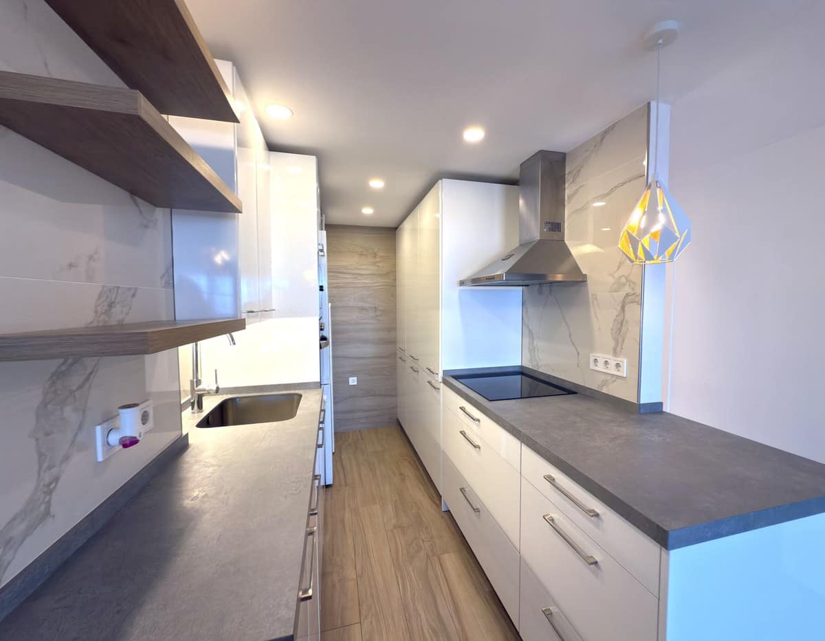 The apartment features 2 spacious bedrooms with built-in wardrobes, 2 full bathrooms, a private terrace perfect for relaxing, air conditioning, central heating, and is fully adapted for people with reduced mobility.