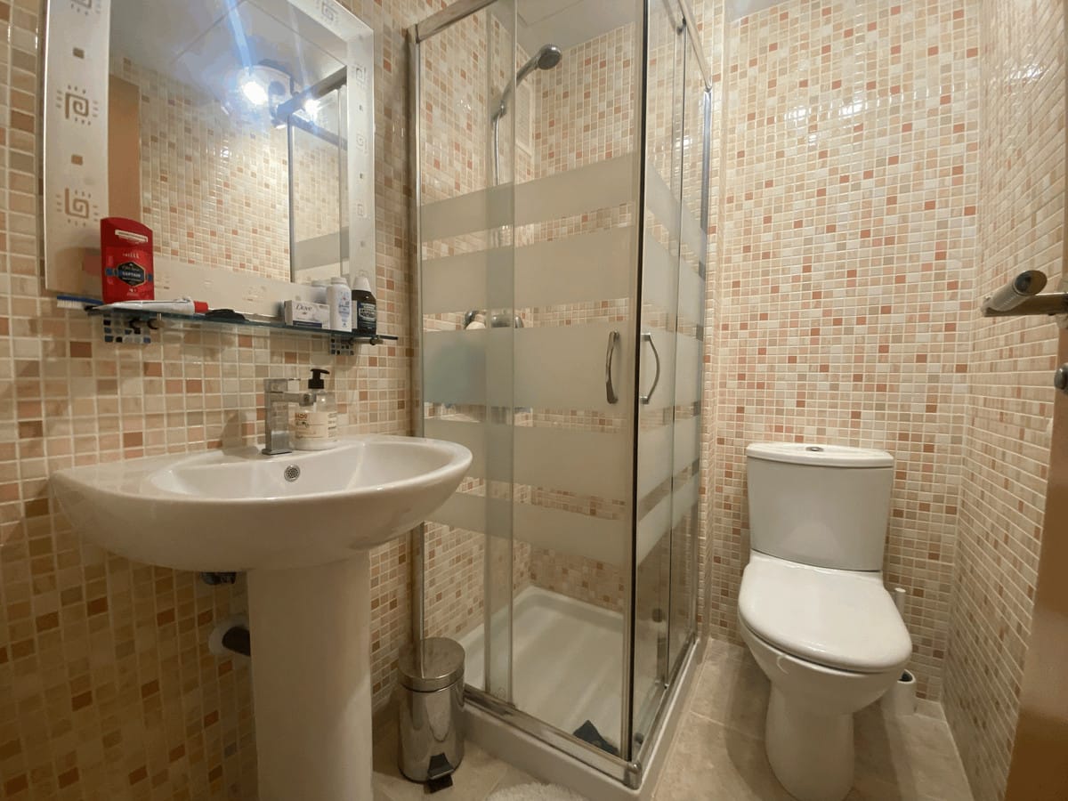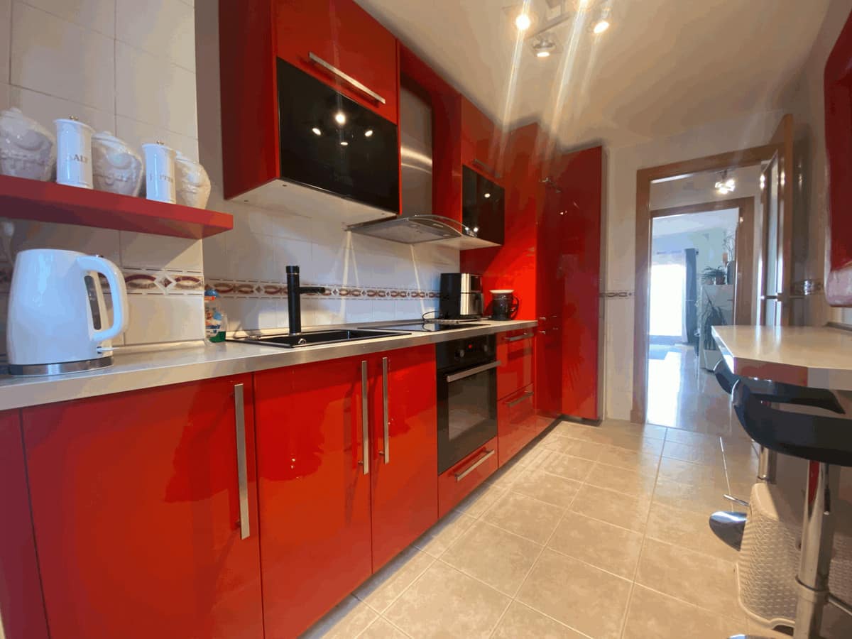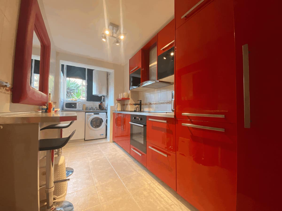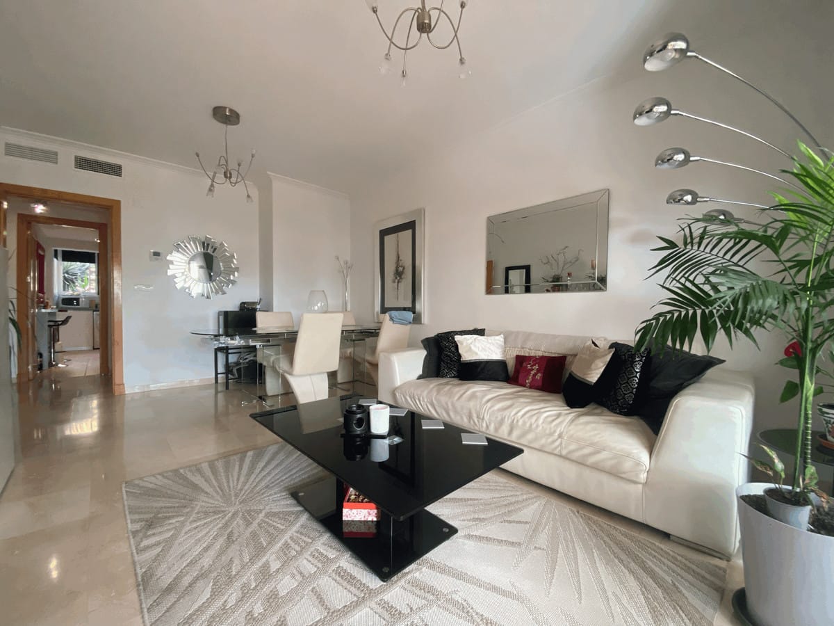 We present this spacious and very bright ground floor apartment. Upon entering, we find an entrance hall that leads to a separate kitchen with a laundry room and to a very open living-dining room thanks to a large window that connects to the generous terrace, with partial sea views, from which there is direct access to the communal pool. The living room also has two additional windows on the side, providing natural light throughout the day.