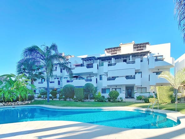 The apartment is located in the prestigious Costalita urbanization — one of the most sought-after beachfront complexes in Estepona. It features beautifully maintained tropical gardens, a swimming pool, direct access to the beach and promenade, and all amenities nearby: restaurants, shops, golf courses, and a school in Cancelada. Only 10 minutes to Puerto Banús and about 12 minutes to Estepona town center.