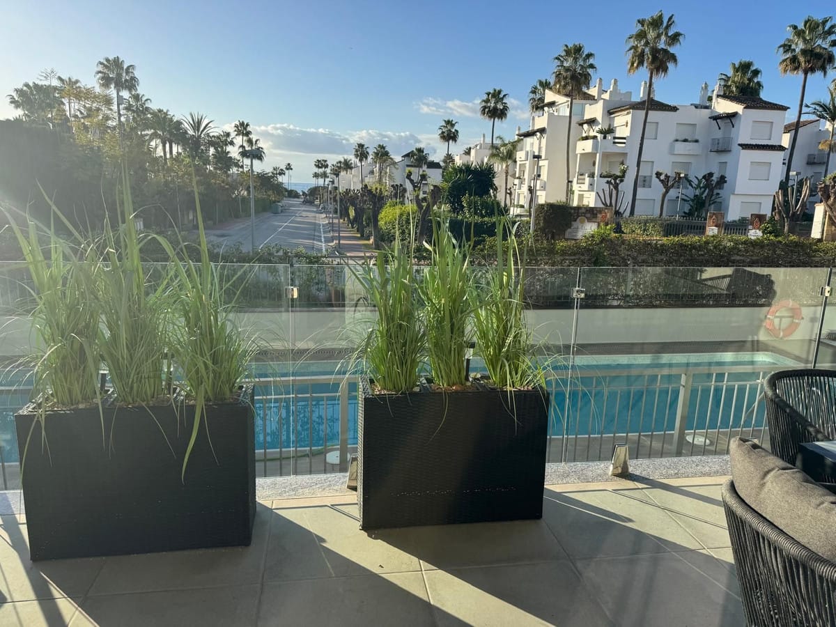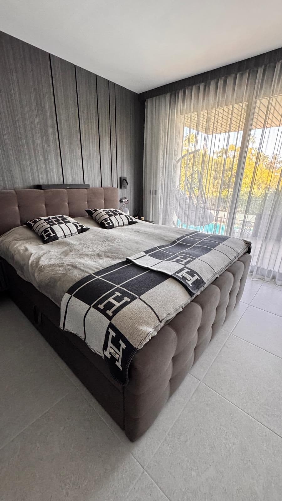 Two-bedroom apartment, fully furnished and equipped in a modern style, with furniture, appliances, and electronics. It's 250 meters from the sea and the promenade stretching all the way to Estepona. The modern building offers proximity to restaurants, a school, paddle tennis courts, Mercadona, and Lidl, all within a 300-500-meter radius. The nearest golf course, with a practice base and a driving range equipped with Trackman, is 6 km away – Atalaya Old and New Courses. A garage space with electric car charging and a storage unit is available. An outdoor swimming pool with sun loungers and a separate entrance is available. The only new, unique building in this area offers sea views, and all furniture, appliances, and accessories are included in the price. Intelligently controlled LED lighting, custom-made units, and completely updated bedroom and living room decor compared to the original build. The wardrobes, cabinets, and kitchen units have been modernized. A great base for exploring all the area's golf courses and attractions. Quiet and peaceful neighborhood