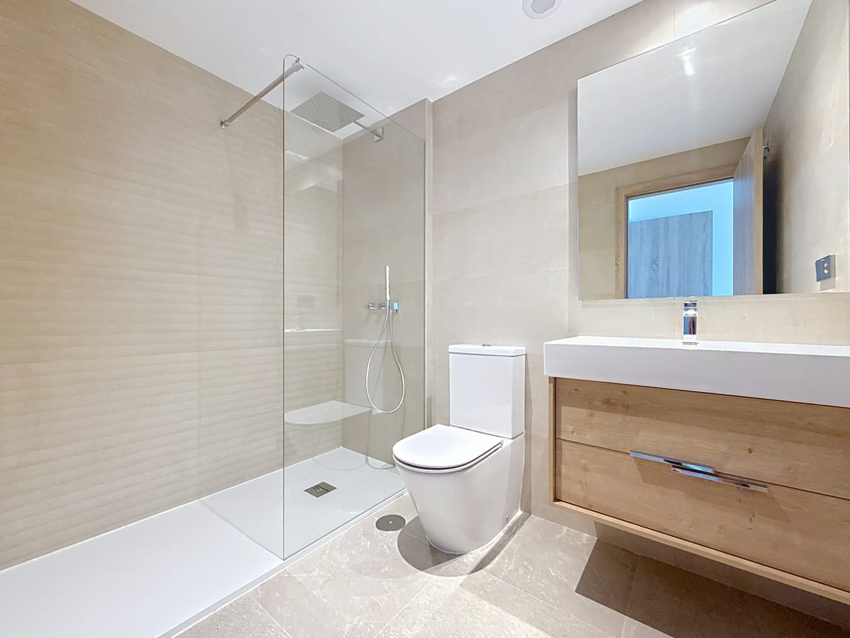 The kitchen is fully equipped with high-quality appliances. The bathrooms are decorated and furnished in neutral, relaxing tones, offering the simplicity of understated luxury.