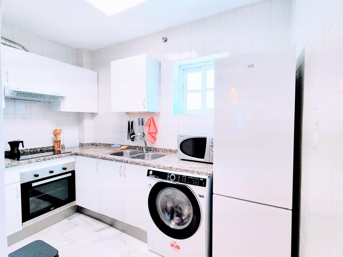 As you enter the property, to the right side there is a single sized bedroom. The living room is spacious with high ceilings and is very well lit due to the apartment being South facing, which means there is sun all day. There is an open plan American style fully equipped kitchen, with brand new white goods that has just been installed.
