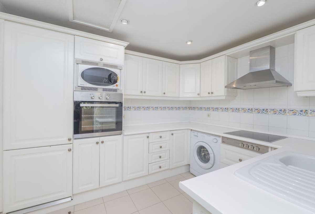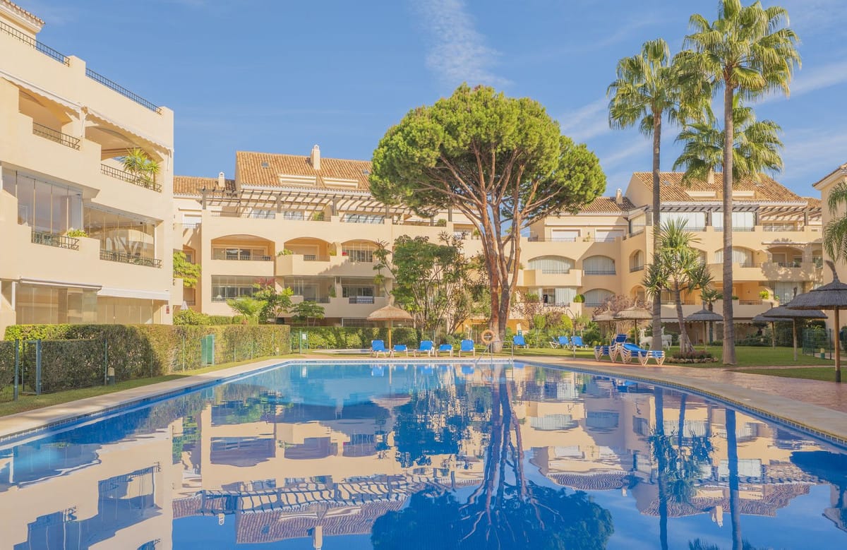 Great Middle Floor Apartment at Hacienda Playa, Elviria beachside. The best and most important development beachside Elviria would be Hacienda Playa Complex, made up of several phases and boasting high end building materials and finishes, as well as properly taken care of common green areas, with a big adult pool as well as children's. This unit comprises two bedrooms, the main one en suite, and two bathrooms; an ample living room with dining area and access to the huge garden facing covered terrace adding up to 38sqm, besides, a complete kitchen with utility room. A spacious apartment with marble flooring and double glazing. The property includes private underground huge private parking space and storage room. Located at short distance of Elviria's Open Commercial Center offering a plethora of facilities such as pharmacy, supermarkets, hardware store, municipality, etc. Besides, a number of leisure and gastronomic businesses. All in a privileged location beachside the A7 with all the chiringuitos, beach clubs and restaurants of Elviria Beaches.