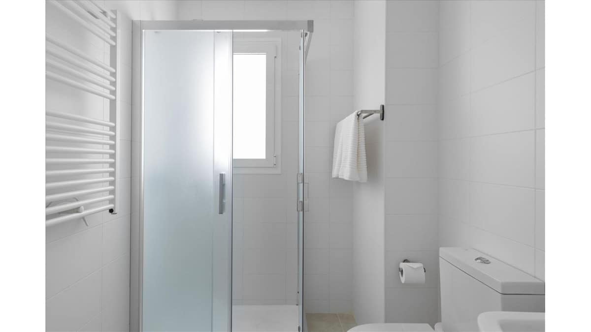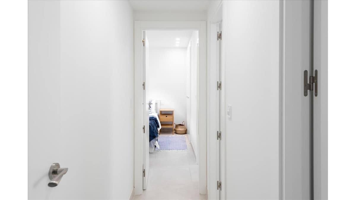 The layout comprises an entrance hall, fully fitted kitchen, bright living–dining area, two bedrooms, two bathrooms, a separate utility/laundry area, and direct access to the terrace. The apartment enjoys a practical and comfortable distribution, ideal for both residential living and rental use.