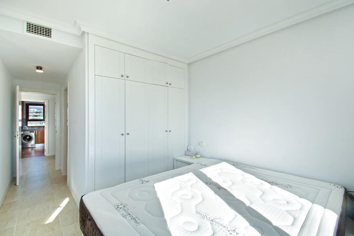 The heart of the home is the expansive living room, bathed in natural light and adorned with panoramic views of the sea and majestic mountains. Step outside onto the vast private terrace, where you can bask in the beauty of the lush communal gardens below and admire the tranquil vistas of the surrounding landscape.