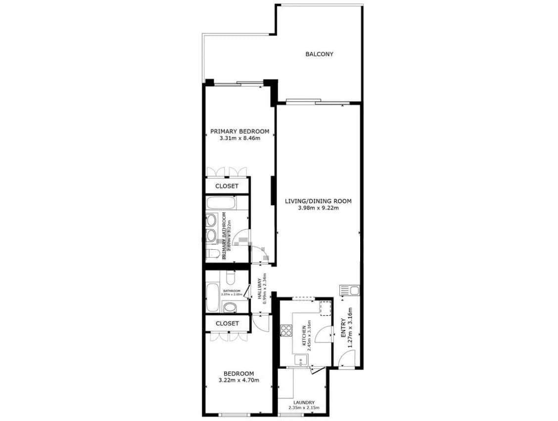 The kitchen features all top-brand appliances and has been built with a central island and plenty of storage space.