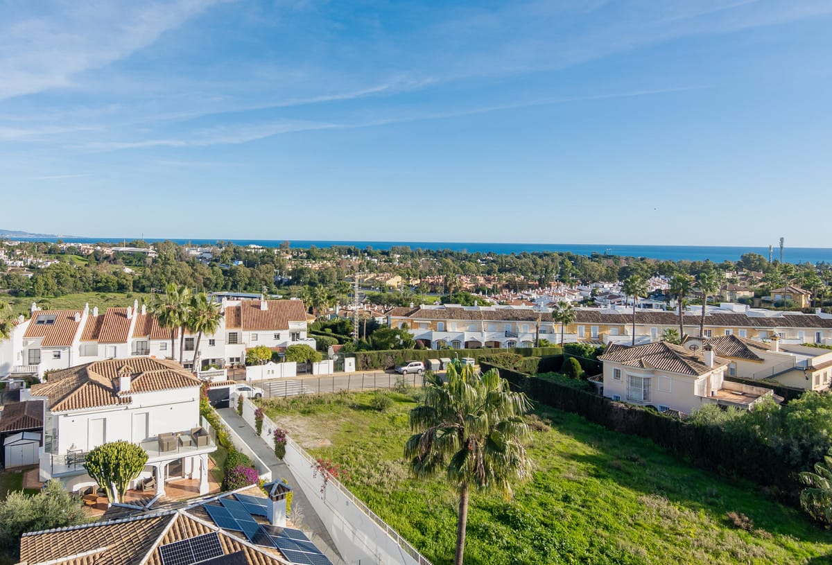 This first-floor duplex penthouse offers beautiful sea views over open fields. It is a top-quality, spacious apartment with marble throughout. An elegant entrance leads to an open lounge and dining area, complete with a fireplace and high ceilings. The living room opens onto a large terrace with stunning sea views.