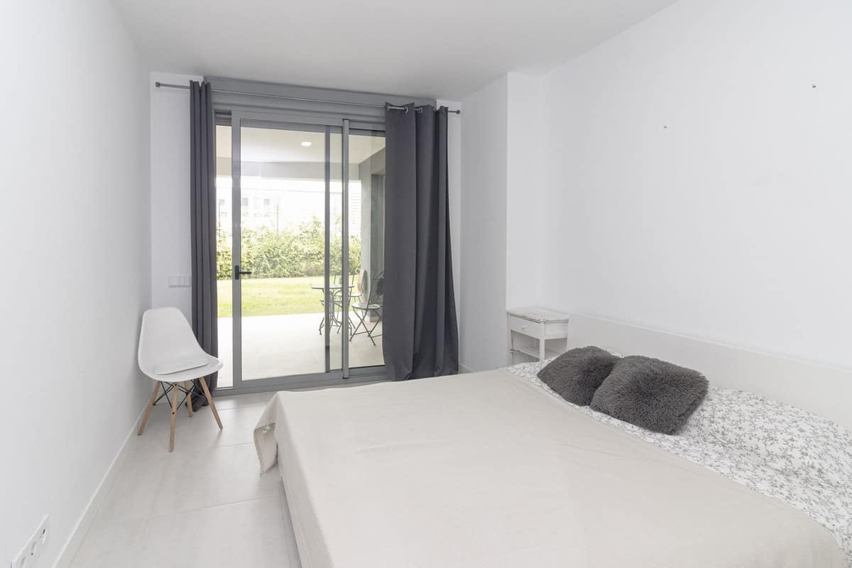A bright and spacious living room with access to a large terrace overlooking the Mediterranean