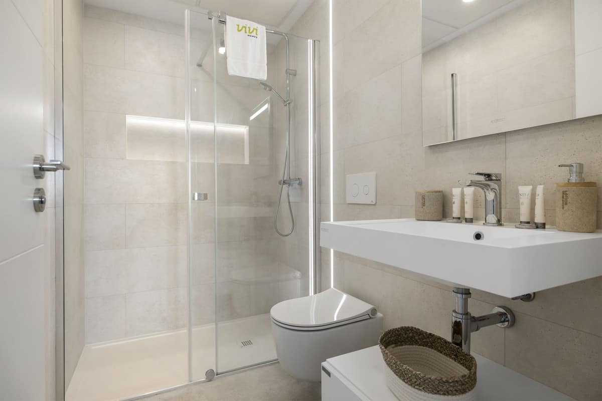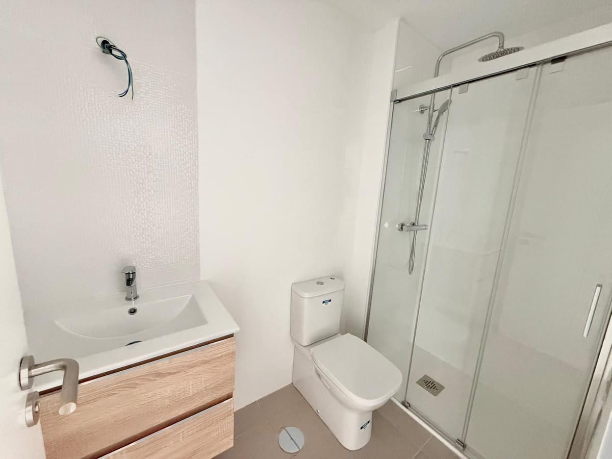 Brand-New Apartment (2025) in the Heart of Fonjerola – With Upgraded Features This outstanding brand-new apartment, completed in 2025, is located in the very center of Fonjerola, right next to Constitution Square. Its location is exceptional: less than a five-minute walk to the beach and close to the Fonjerola Train Association, with all amenities, shops, and services within easy reach. Situated on the second floor, the property features a modern and highly functional layout. It offers two bedrooms and two full bathrooms, both with walk-in showers, one of them en suite in the master bedroom. Both bedrooms include built-in wardrobes and have access to a small, narrow private terrace, enjoying pleasant afternoon sun. The bright open-plan living area seamlessly connects the living room and the kitchen, creating a spacious and contemporary atmosphere. The fully equipped kitchen includes dishwasher, washing machine, oven, fridge, microwave, and a full range of appliances. Additional upgrade features enhance comfort and quality, such as a water filtration system, an upgraded designer kitchen faucet, and an extra-large hot water tank, ensuring excellent water pressure and hot water availability at all times. The apartment also benefits from a main terrace with morning sun, ideal for outdoor breakfasts and relaxation. This terrace includes a laundry area with the hot water tank and solar panels for domestic hot water, improving energy efficiency and sustainability. The property is sold with a developer’s warranty, offering security and peace of mind. A unique opportunity to enjoy a new, upgraded, energy-efficient apartment in a prime central location—perfect as a permanent residence, holiday home, or investment property.