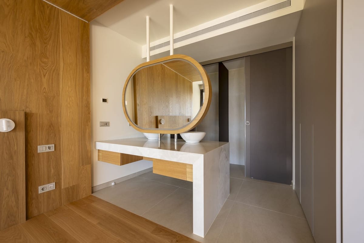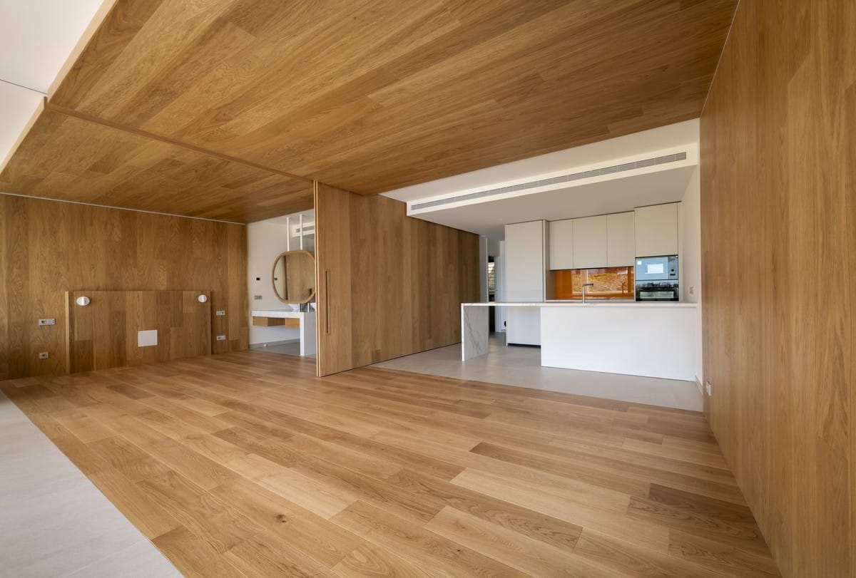 The interior blends sleek contemporary architecture with warm, high-quality finishes. Floor-to-ceiling windows create a seamless connection between indoor and outdoor living, enhancing both space and natural light.