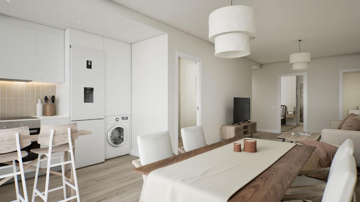 The property is located on the 1st floor, with an elevator. It has a total area of ​​64 m², distributed in a living room and dining room, an open-plan equipped kitchen, 2 bedrooms and 2 bathrooms.