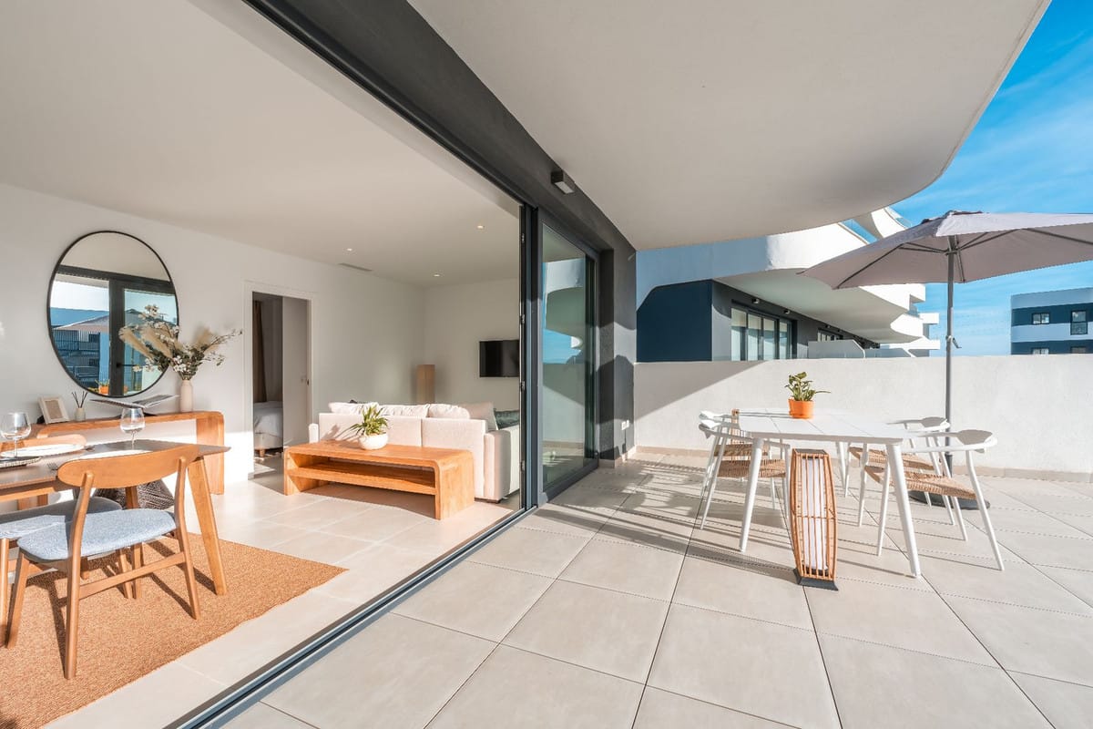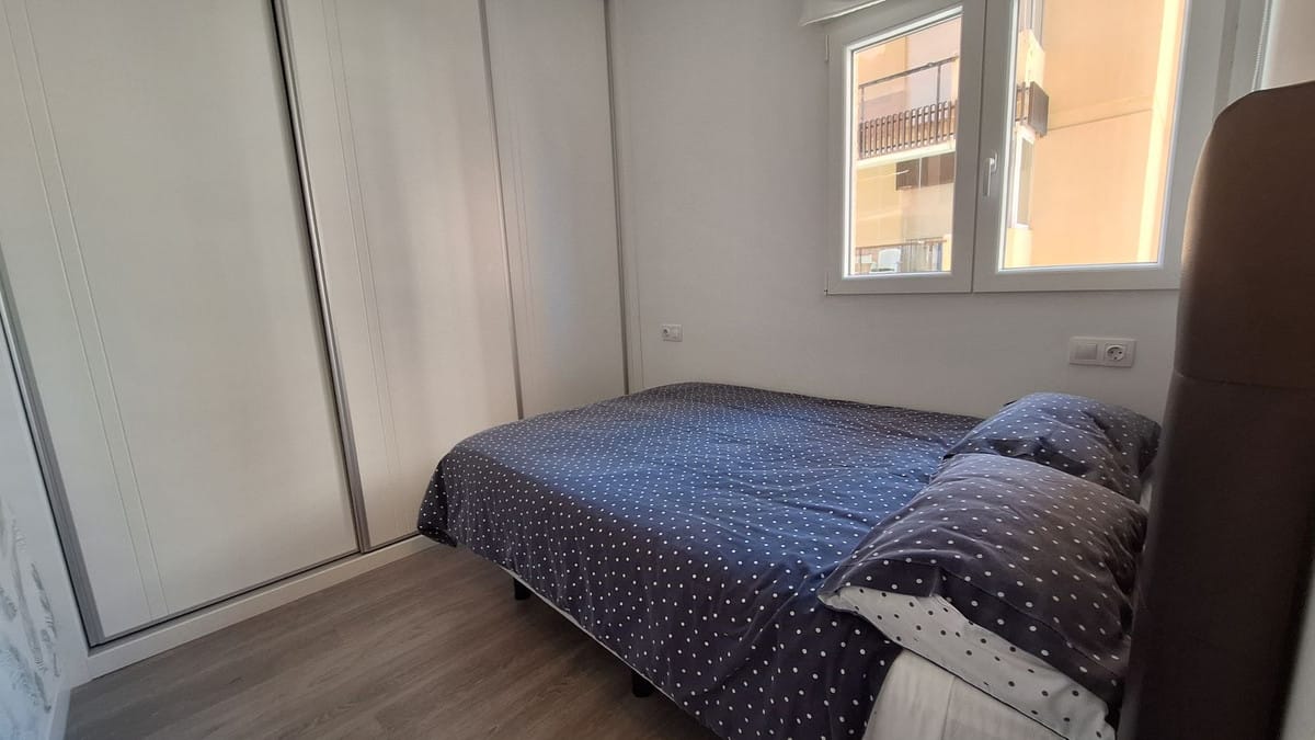 Ground floor apartment for sale, 66 m², in Fuengirola, Málaga. This apartment is just 100 meters from El Galgo beach (port area) and 100 meters from the heart of Fuengirola (Plaza La Constitución). It enjoys a prime location surrounded by shops, restaurants, and all kinds of amenities. The bus station is 150 meters away and the train station just 200 meters away. The apartment has air conditioning throughout. It features a full bathroom with shower and a window overlooking the patio, a spacious living room with two windows, an open-plan kitchen with appliances and all furnishings, a master bedroom with air conditioning and a window, and a second bedroom with two bunk beds plus a trundle bed, comfortably sleeping 5 people. It also includes wardrobes and a built-in wardrobe. There is a semi-covered patio with a laundry area. The price includes a private parking space and a storage room in the same building.