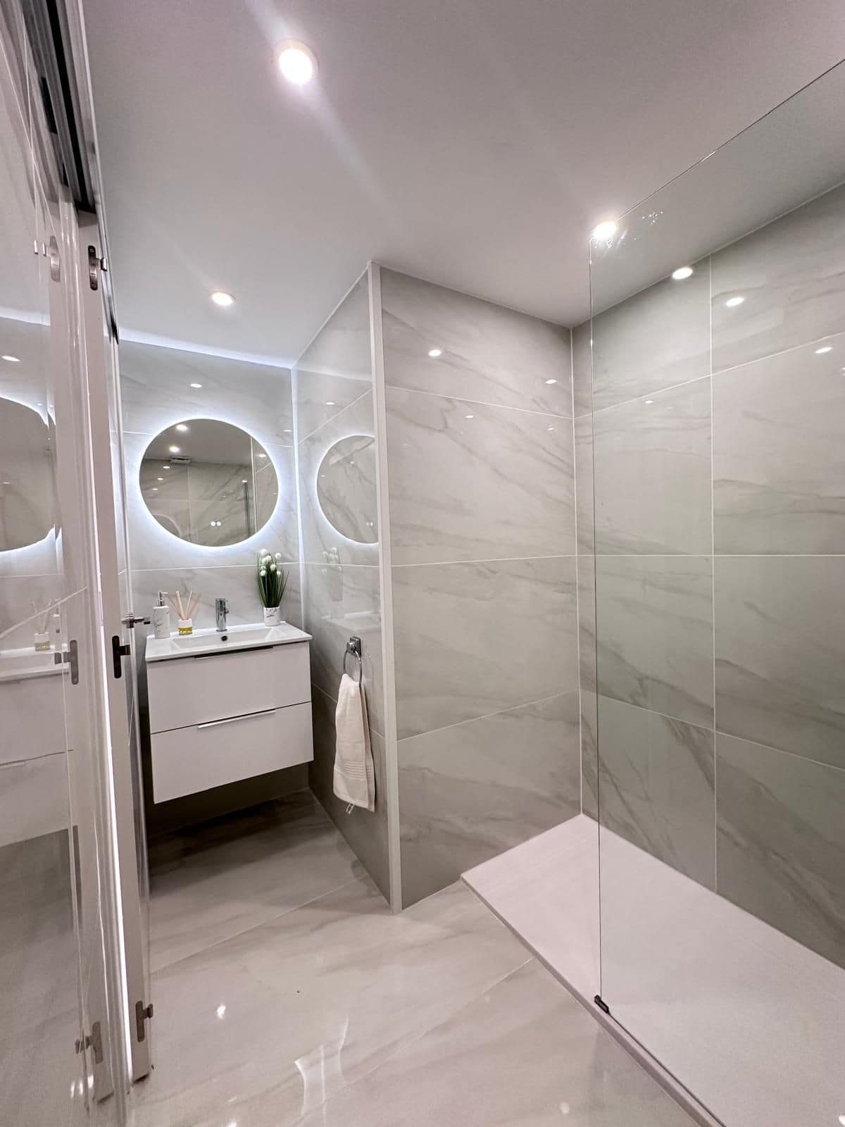 The duplex layout provides excellent privacy and balance, with two generously sized bedrooms, two contemporary bathrooms, and an additional ground floor WC, all finished to a high standard that reflects the home’s modern luxury feel.