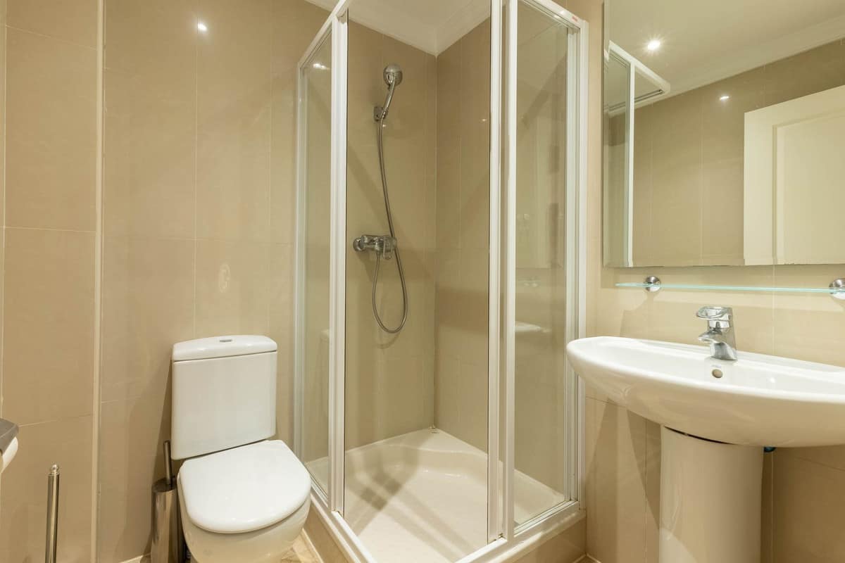There are two bedrooms, with the master thoughtfully renovated to include dropped ceilings with luxury lighting and a modern en-suite bathroom featuring a walk-in rain shower. The apartment overall is very well kept and beautifully presented.