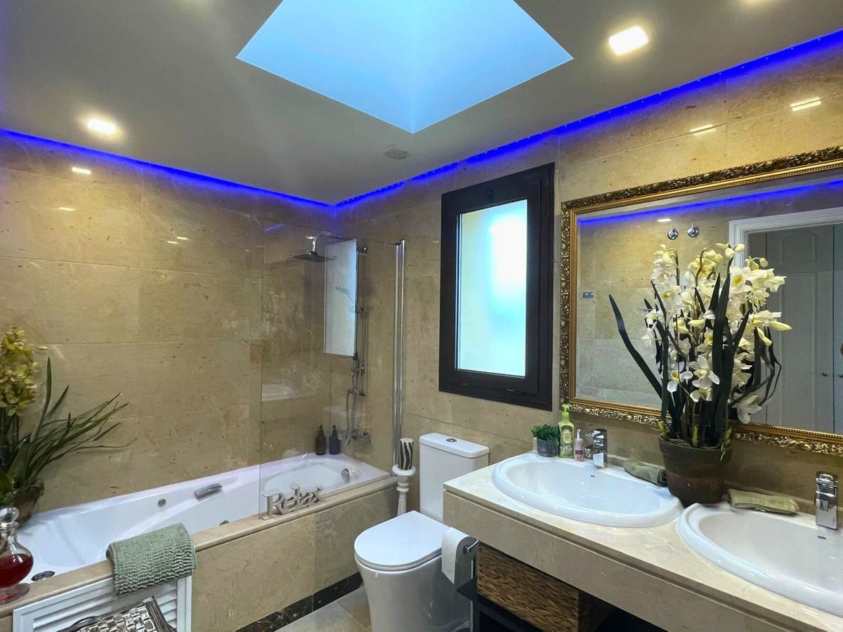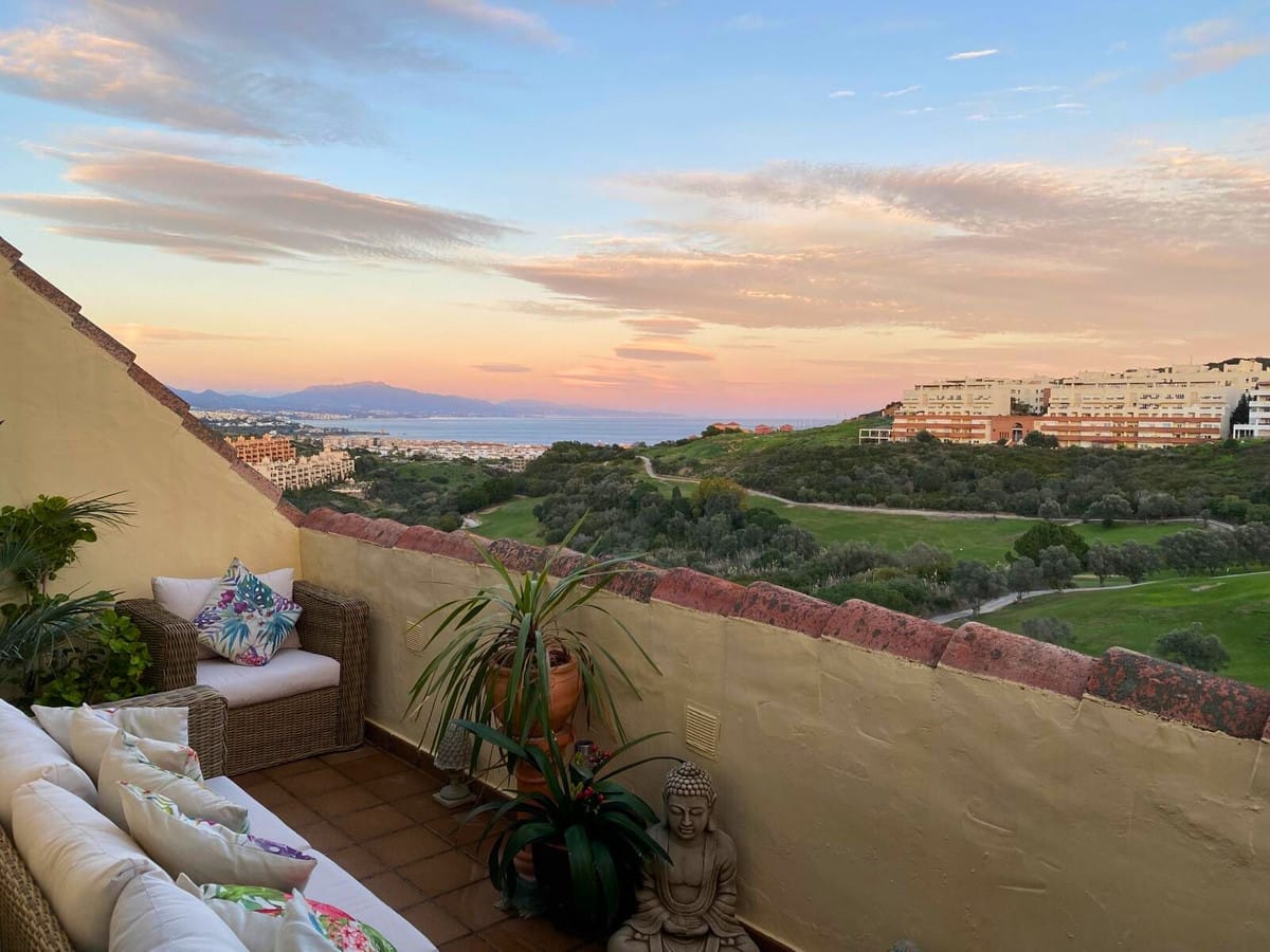 This beautiful third-floor apartment in La Duquesa features a bright southwest orientation, flooding the space with natural sunlight. It offers 2 spacious bedrooms and 2 full bathrooms (one ensuite with jaccuzy style bathtub), and comes fully air-conditioned, tastefully furnished, and equipped with a modern, fully fitted kitchen. The private southwest-facing terrace is the perfect spot to relax, with stunning views over the sea,