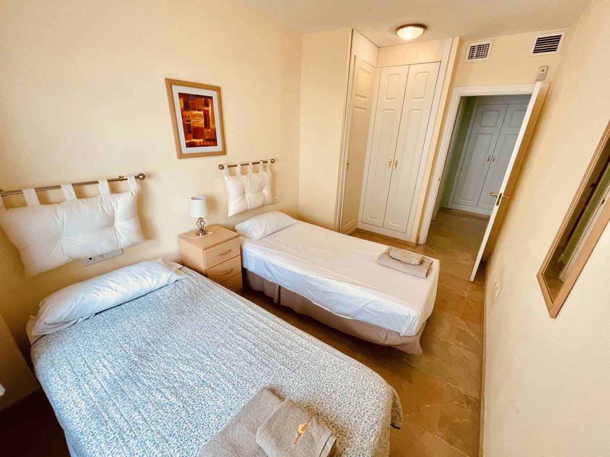 Beautiful 2-Bedroom Apartment with Sea Views. This elegant 2-bedroom, 2-bathroom apartment boasts stunning sea views from its spacious terrace. Located just a 5-minute drive from La Duquesa port, the apartment features marble flooring throughout and integrated air conditioning. Enjoy a well-maintained community with multiple swimming pools, plus the convenience of a private garage space and storage room. The property can be sold fully furnished for your convenience. Contact us for additional questions and viewings.