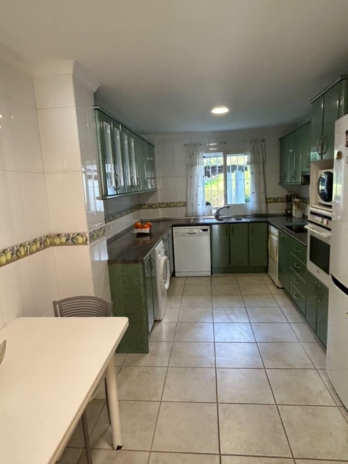 The layout is designed for comfort, with a spacious open-plan living and dining area that opens to a covered terrace for dining and lounging. The kitchen is modern and practical, with a separate utility room. Both bedrooms are generous in size, with fitted wardrobes, private terraces, and countryside views that create a sense of retreat.