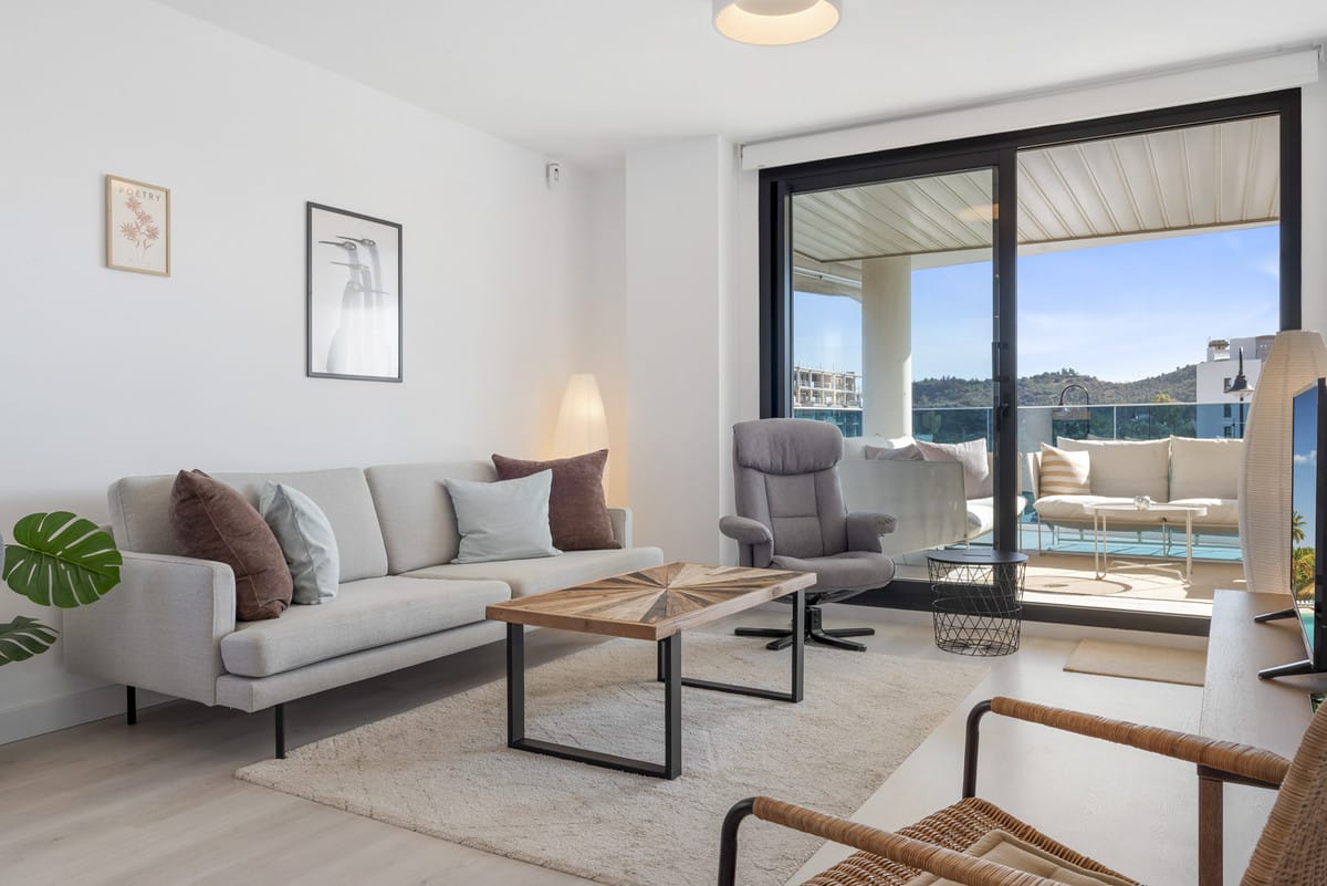 This beautifully designed 2-bedroom, 2-bathroom apartment is located in the highly sought-after Jardines de las Lagunas, in the heart of Las Lagunas de Mijas, one of the most dynamic and fastest-growing areas on the Costa del Sol. Offering 115 m² of interior space and a 37 m² private terrace, the home blends modern Mediterranean design with comfort and functionality, making it ideal as a permanent residence, holiday home, or a high-yield investment.