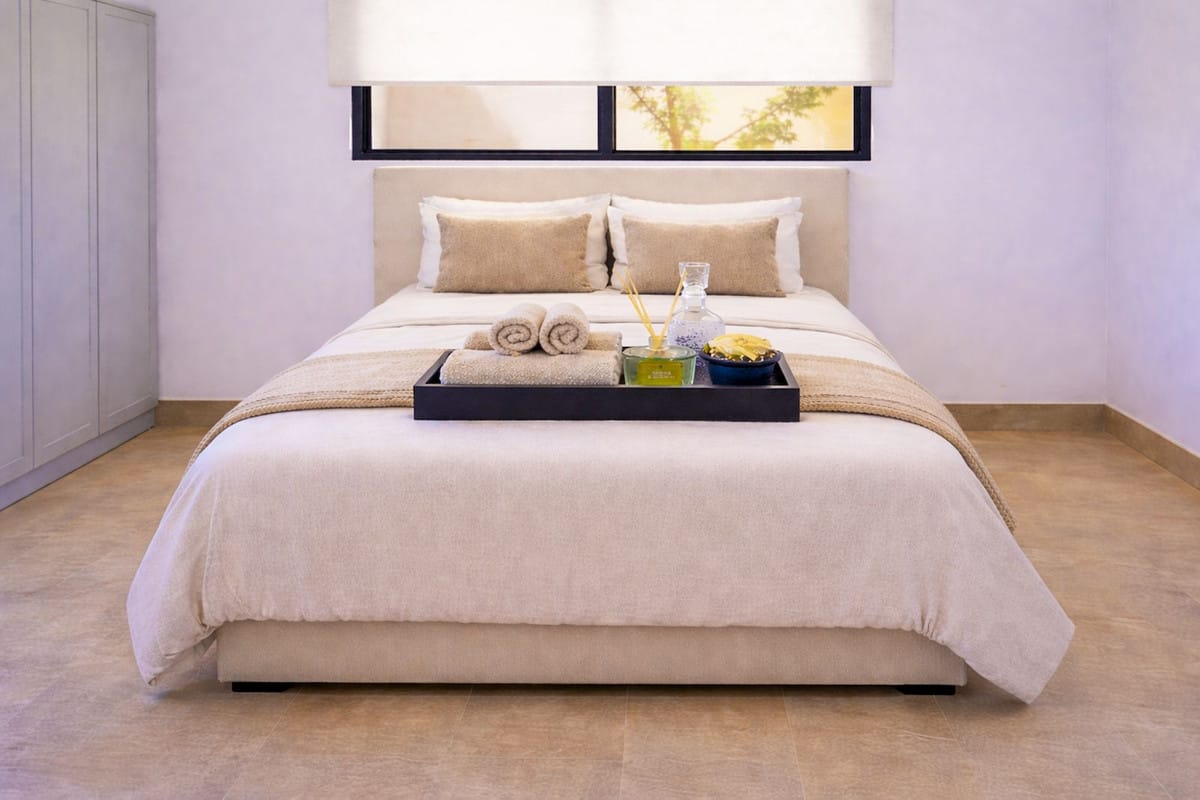 Boasting a total built area of 113 m², the apartment features a bright and spacious living-dining area that opens directly onto a 19 m² private terrace, ideal for al-fresco dining while overlooking the manicured communal gardens. The interior comprises 2 generous bedrooms and 2 bathrooms, including a master suite with an en-suite bathroom. The independent kitchen comes fully fitted and includes a practical separate utility room.