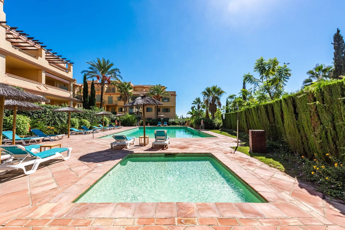 Four Seasons Flamingos is an exclusive, gated community set within the renowned Los Flamingos Golf Resort in Benahavís. Residents enjoy beautifully landscaped gardens, two impressive swimming pools (one heated), serene fountain features, and tropical greenery that create a calm, elegant atmosphere. The community also provides 24-hour security and concierge services for peace of mind.