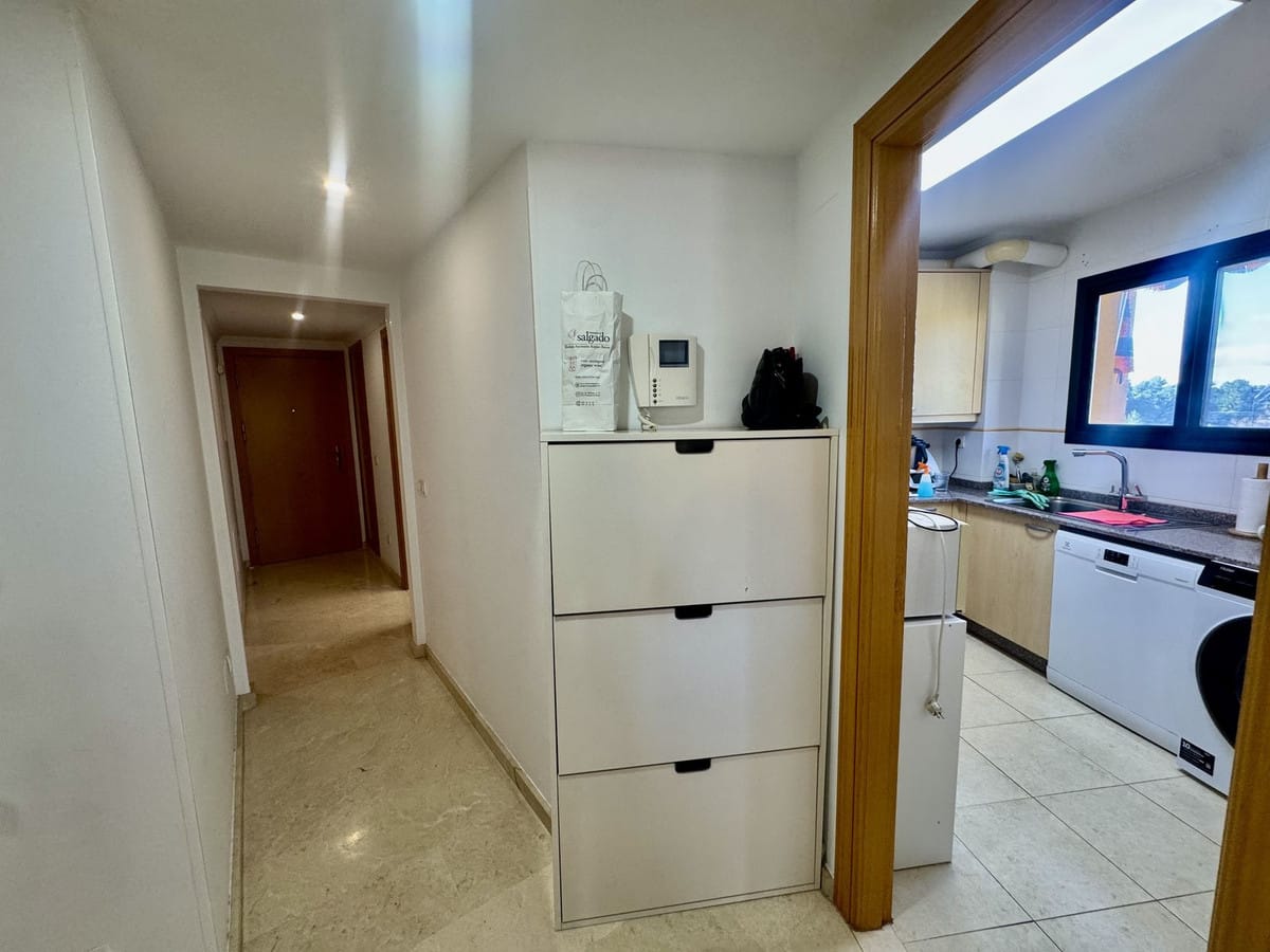 The property offers 70 m², set in a building from 2006 with marble flooring, and features a very functional layout: entrance hall, independent kitchen with window and pleasant mountain views, plus a spacious pantry. The bright living-dining room has direct access to a Lumon glass-enclosed terrace, perfect for year-round enjoyment, with open mountain views. Northwest orientation with lovely afternoon sun.